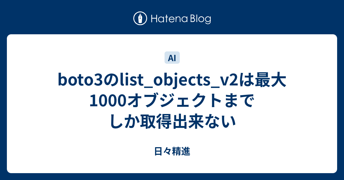 boto3のlist_objects_v2は最大1000オブジェクトまでしか取得出来ない 日々精進